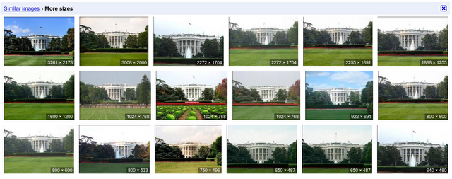 Google Images Search lets you find “More Sizes” for an image you search for, Now, when you search for an image, hover on it, you will find a new option called “more sizes” that lets you find more sizes of the same images you searched for. This feature was launched by Bing in March, and now by Google Images Search!