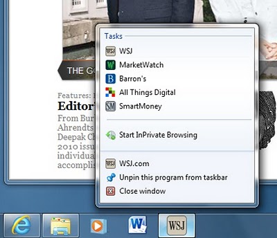 Internet Explorer 9 will satisfy Windows 7 users. Beside the ability to pin sites and web apps to the taskbar and start menu, Web developers will be able to create specially designed pages that allow end users to take the site URL and pin it as a button on the Windows 7 taskbar. Like Google.