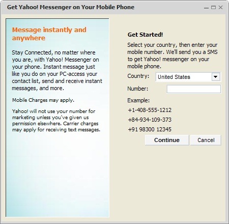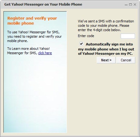 (If you select the check box you will be automatically sign in to mobile if you logout your Yahoo! Messenger client and continue to receive messages from your phone and you can reply them via SMS)…