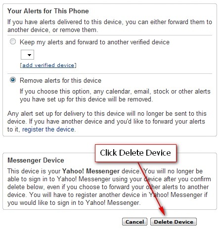 and click the Delete Device button to confirm the task