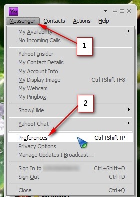 Open your Yahoo! Messenger Client and select Messenger from the menu and Preferences (you can also use Ctrl+Shift+P for quick command).