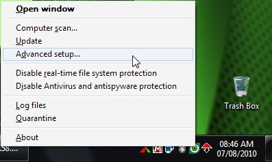 Right-click in your NOD32 icon in system tray and click Advance Setup