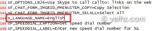 from the dialogue window, click Save As button then choose a folder location you want to save it to, We prefer to save it to Skype’s default install folder “C:Program FilesSkypePhone” or any folder you want and name it to any name you would like, e.g. NoSkypeAds.lang then Open the language file you saved using any text editor like notepad, now look for the line like in the image below;