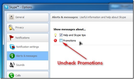 Next, click Notifications > Alerts & Messages, and then Uncheck Promotions