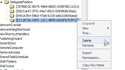 HKEY_LOCAL_MACHINESOFTWAREMicrosoftWindowsCurrentVersionExplorer MyComputerNamespaceDelegateFolders