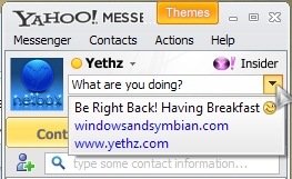 Most of us usually set a custom status messages in Yahoo! Messenger and the more you add a custom status messages, it will bring a drop down list of choices, suggesting if you want to use the recently added custom messages.