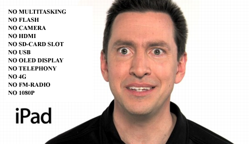 After the iPad announcement there appeared a lot of opponents of this device who focus on its disadvantages – no multitasking, no conventional USB, no Flash etc. Most of these imperfections are far-fetched, some part of them will be corrected in course of time and such as Flash will hardly appear ever at all, I am inclined to suppose that Apple will win this war and eradicate this technology.