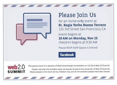 Were just in. Facebooks is holding another special event on Monday to announce something ahead of Web 2.0 Summit. It notes that This special event is in advance of Mark Zuckerbergs conversation... Read more