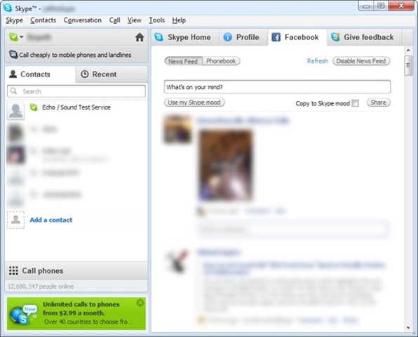 Facebook is now integrated in Latest Skype John Miller | January 1, 2012 Skype has integrated the Facebook News Feed and Phonebook into Skype, making it easier to stay connected with the people and communities you care about. They... Read more