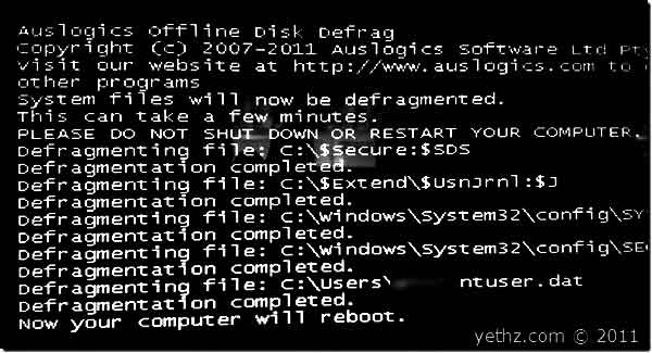 - Defragments system files (MFT, pagefile, hiberfil, etc.)