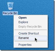 in this little tip, i will share you a patch for easy tweaking and this patch will have an option to Rename when you right click the Recycle Bin icon in your desktop.