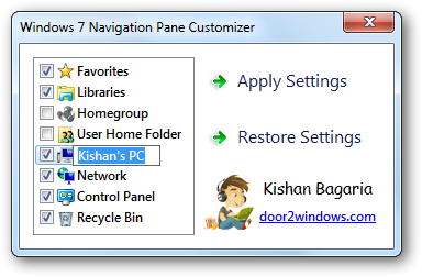 - Download Windows 7 Navigation Pane Customizer [via door2windows]
